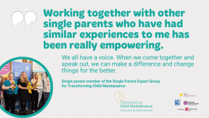 Discover how single parents with lived experience have helped shape the Transforming Child Maintenance project — co-designing solutions, influencing policymakers, and ensuring reforms reflect the real challenges families face.